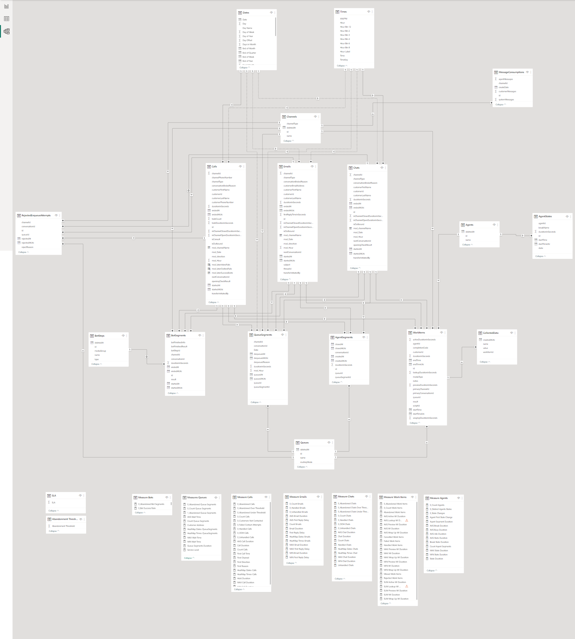 To see the actual tables and relationships used in your report (which might be slighly different from the screenshot below due to its evolution), please see the model view in your Power BI file or open the following URL for the metadata definition file: https://odata.telxl.net/v1/$metadata